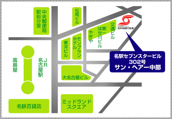 〒450-0002 名古屋市中村区名駅3丁目13番28号 名駅セブンスタービル302号